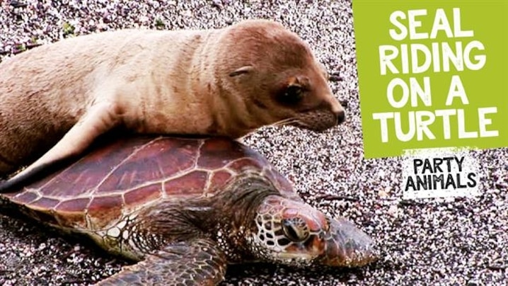 Watch a seal getting a free ride in this video featuring music from Parry Gripp!